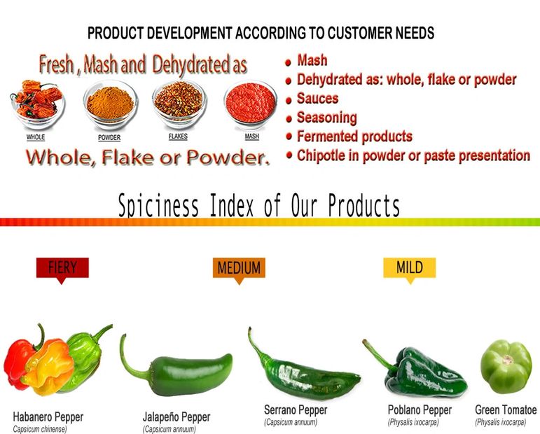 Habanero pepper puree or mash is used as an ingredient in the food industry to make snacks, soups, sauces, gravies, dressings, drinks, seasonings, sweets, meat products (sausages, hams, hamburgers, etc.), dairy products (cheeses, butter , etc.), seafood, ethnic products (tamales, tortillas, guacamole, beans, etc.) and any meal where you want to taste this exquisite flavor.